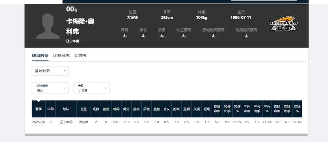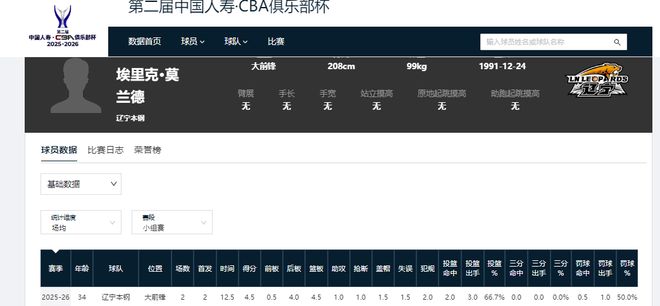 本赛季两场俱乐部杯过后,他场均数据是4.5分4.5篮板。