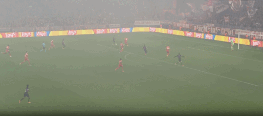 科贝记者:法兰克福球迷往巴萨球迷区投掷杂物甚至发射焰火