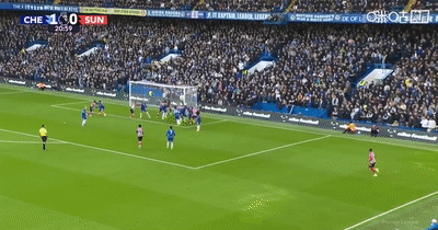 第39分钟,切尔西前场左侧角球机会,又是加纳乔后点包抄不停球直接打门,这次皮球被桑德兰门将罗埃夫斯挡出。